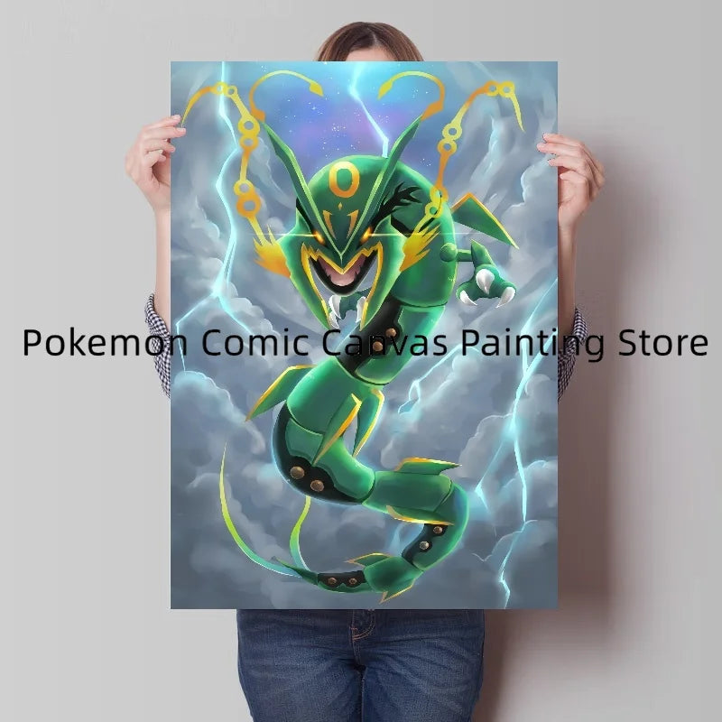 🐉 Pokémon Rayquaza Canvas Art – Japanese Anime Wall Poster & Sticker Décor for Kids’ Rooms 🎨🌌